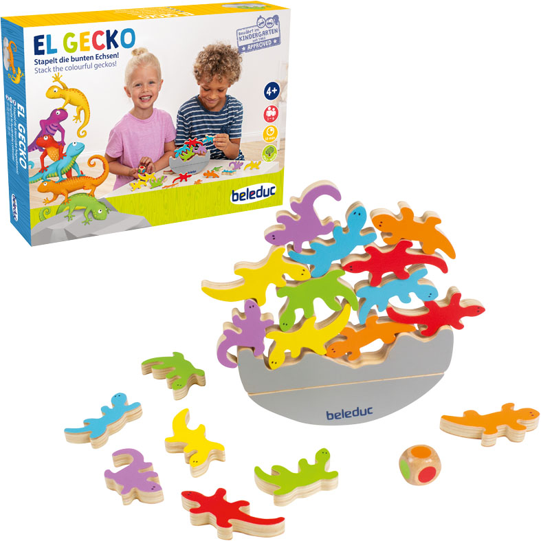 Ένα ξύλινο παιχνίδι ισορροπίας που εξασκεί τη λεπτή κινητικότητα. Οι μικρές σαυρίτσες θέλουν να πάρουν έναν υπνάκο στον ήλιο, αλλά πρέπει να χωρέσουν στον βράχο και να ισορροπήσουν για να μην πέσουν! Αποτελείται από 1 βάση ισορροπίας και 18 ξύλινες σαύρες σε 6 χρώματα και 6 διαφορετικά σχήματα.